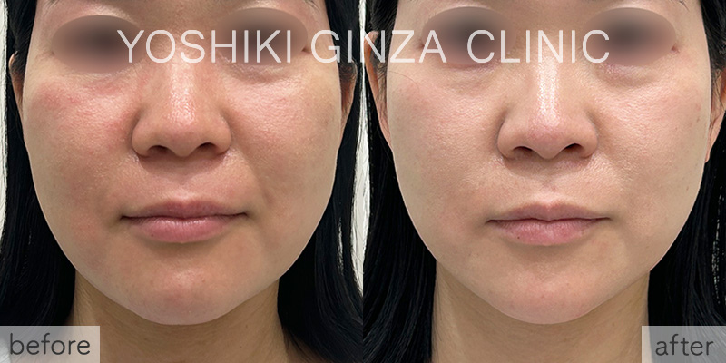 脂肪溶解注射でほほを軽くしてからハイフで引き上げると、さらに効果が高まります。