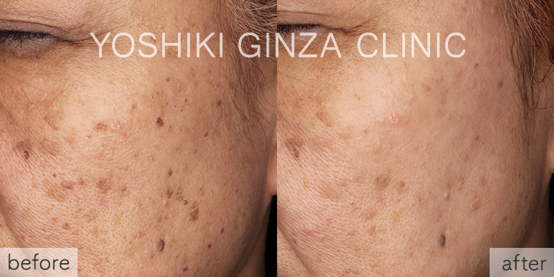 - 施術の説明:お顔全体に散らばったシミや、ニキビあと、毛穴、赤ら顔などをトータルで改善し、明るく透明感のある素肌へ導きます。