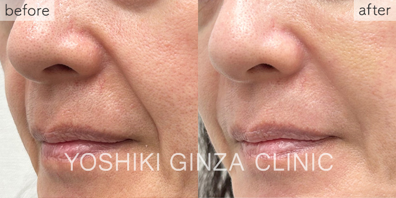 - ※注射一本で、法令線左右両側に注入できるくらいの量になります。狭い部分に注入した場合には、一度の施術で注射一本すべてを使わないことがあり、その場合は、残った分でもう一度施術ができます。