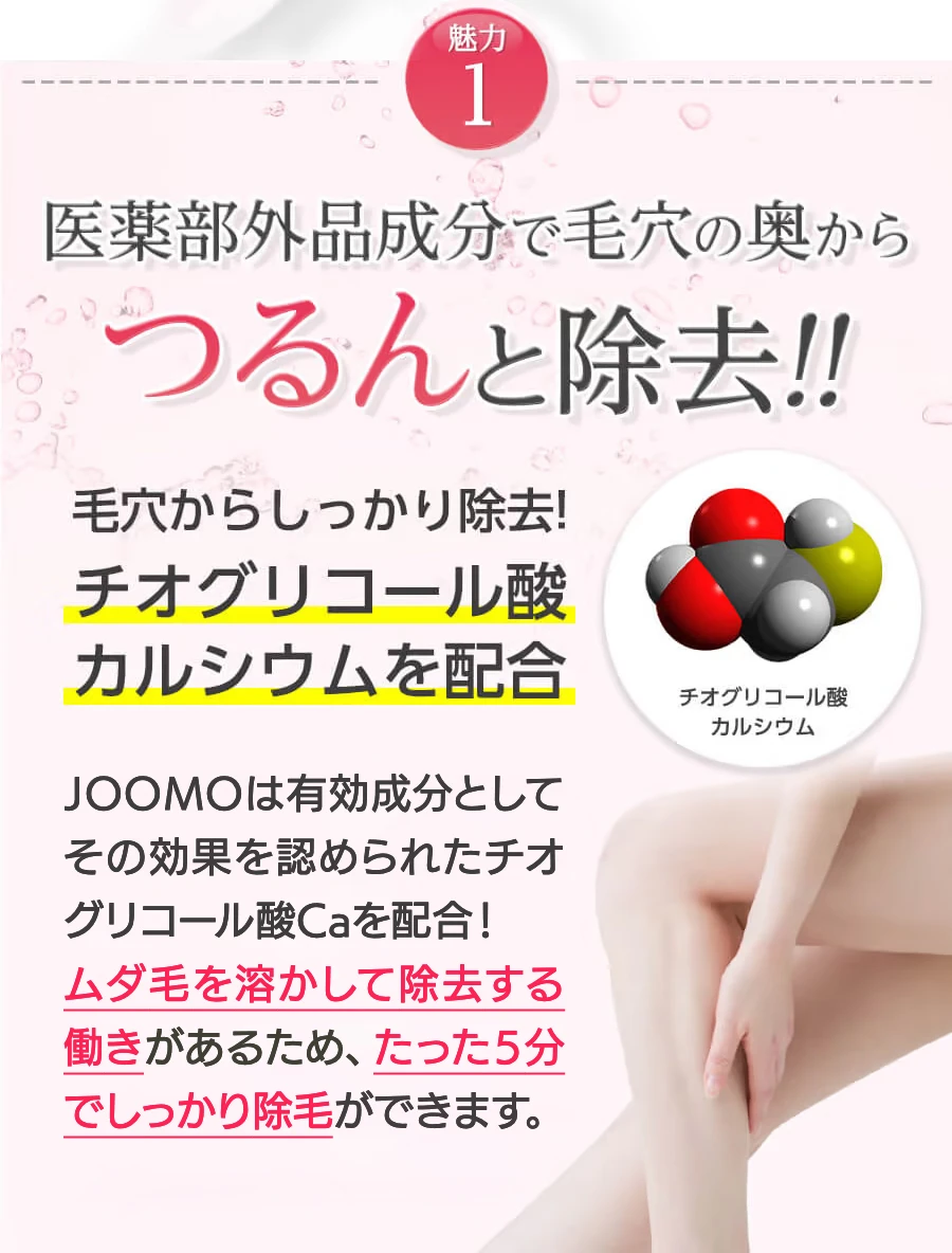 joomoは医薬部外品として認められた除毛クリームで、わずか5分で効果を実感できると話題の製品です。