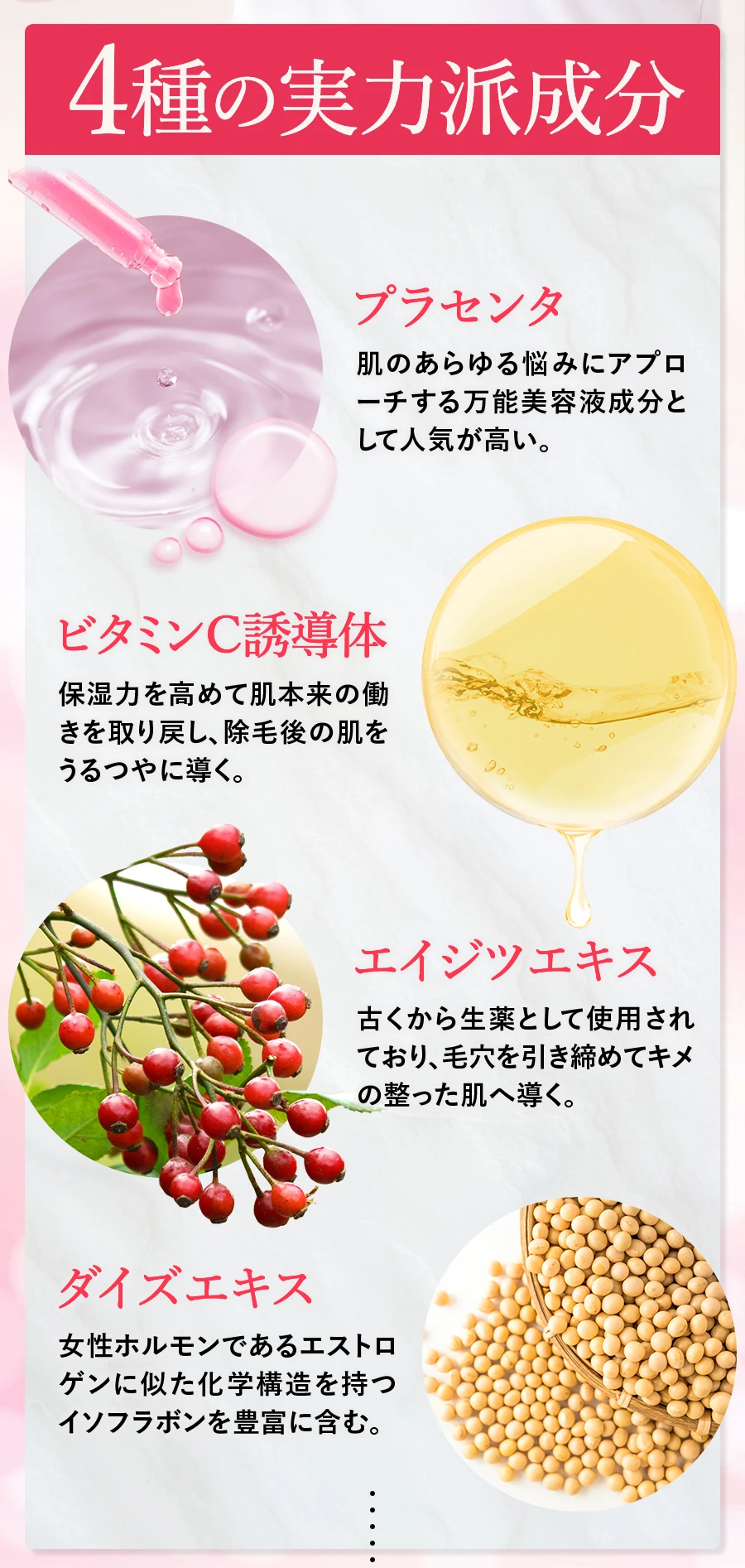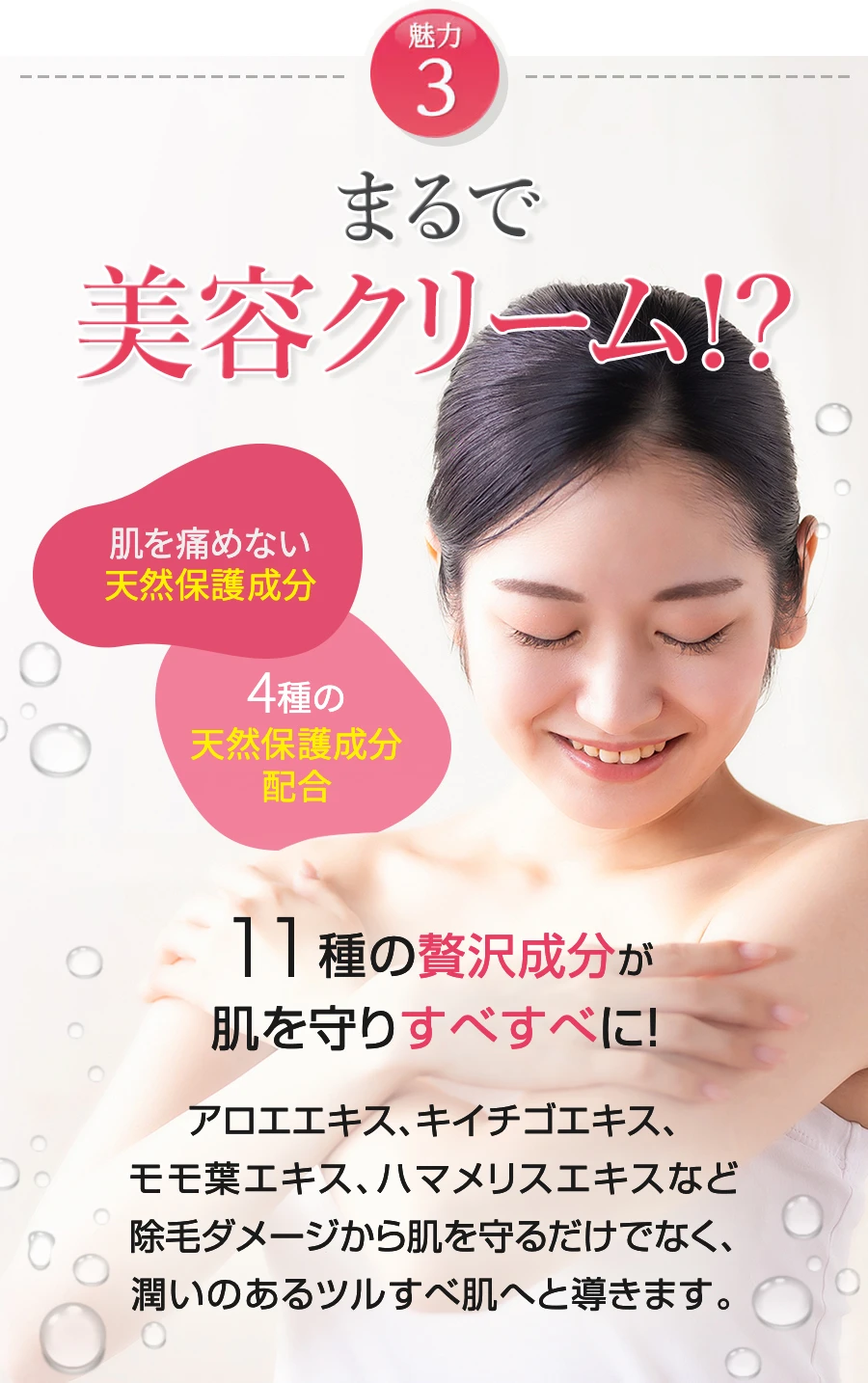 除毛直後から肌がつるんとなめらかになり、乾燥によるカサつきも防げるのが魅力です。