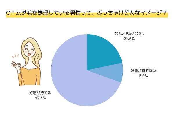 この結果からわかるようにムダ毛を処理している方が女性に好感を持たれることがわかります。